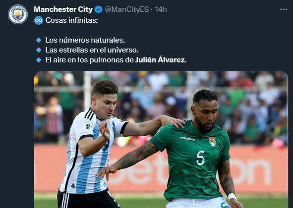 El tweet viral del Manchester City elogiando a Julián Álvarez