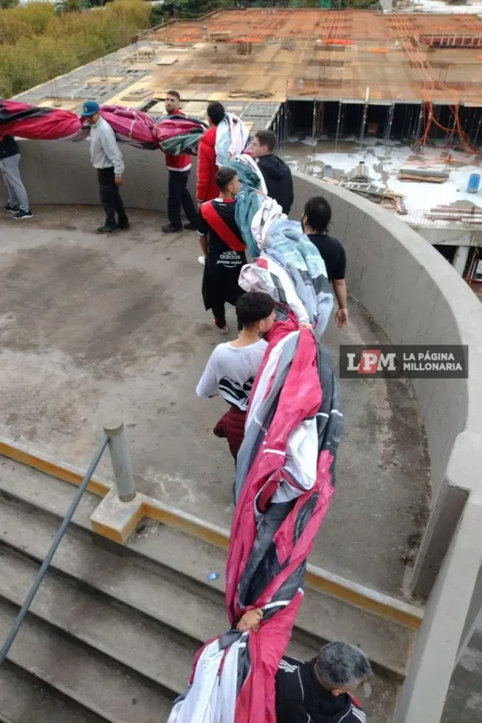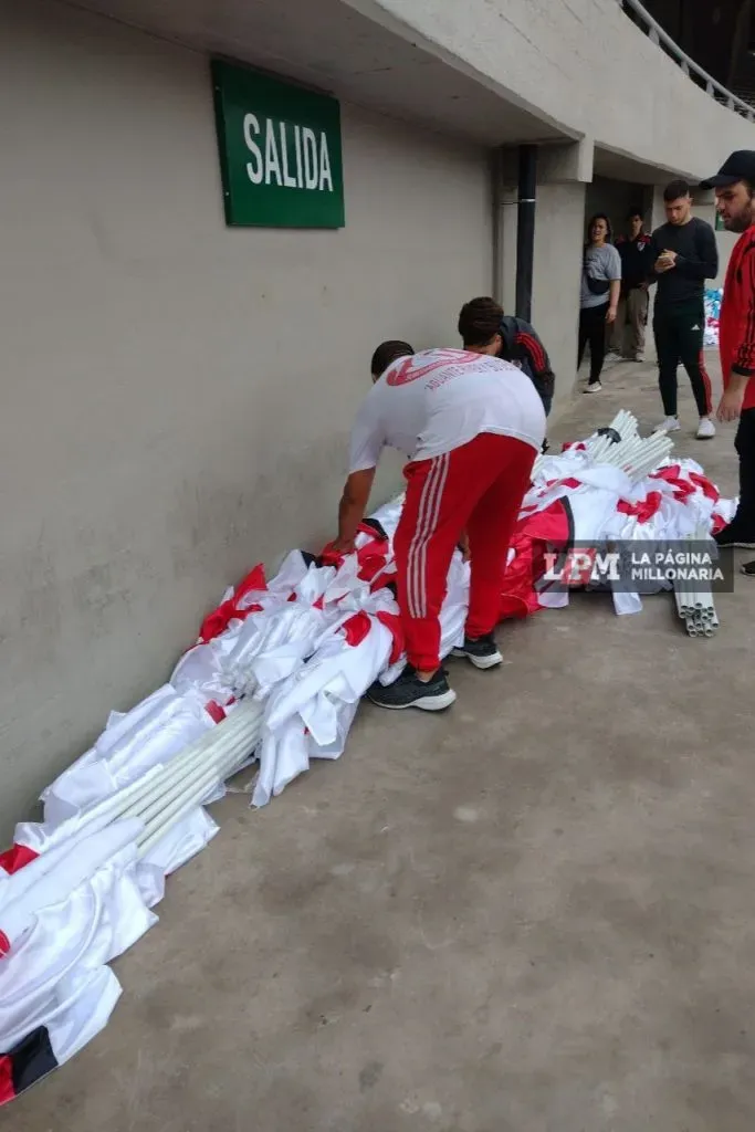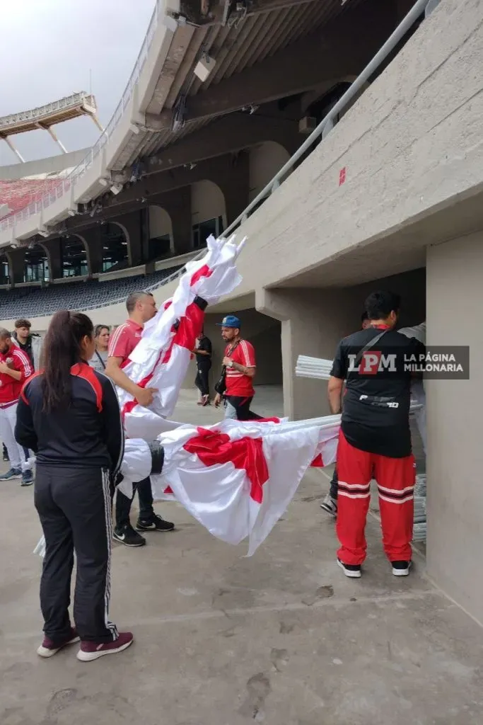 La Página Millonaria tuvo acceso a todo el armado de la fiesta y constató lo que anunciaron los integrantes de la Subco del Hincha durante la semana: habrá un recibimiento inédito e inolvidable. Además de las banderas de palo en los sectores bajos, en las tribunas altas habrán más de 60 mil globos rojos y blancos que formarán la bandera del Más Grande. Los denominados “pendorchos” estarán en la Sivori, en la Belgrano y en la Centenario.