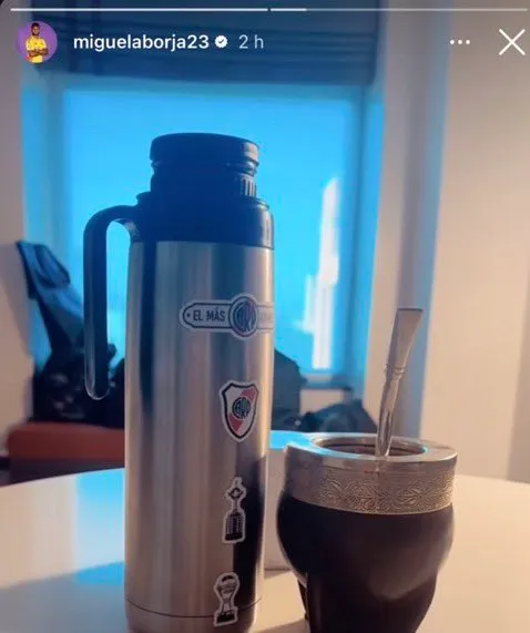 El delantero colombiano publicó en sus redes sociales, más precisamente en sus historias de Instagram, una foto desde la intimidad de la concentración de su equipo, en el país norteamericano. Allí se puede ver un mate, tradición que seguramente adquirió en su estadía en el fútbol argentino. Pero el detalle estuvo en el termo.