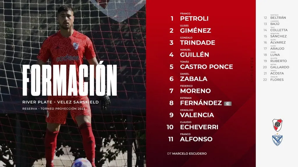 La formación de la Reserva de River frente a Vélez