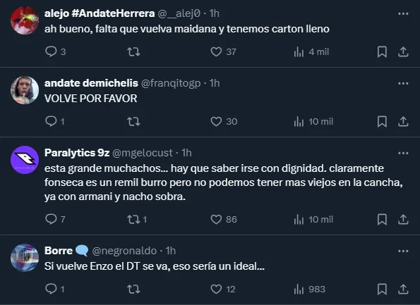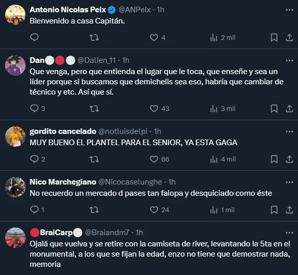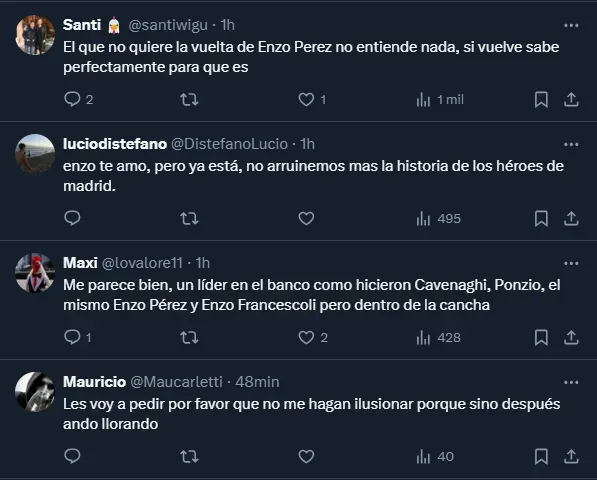 Con la noticia circulando, los hinchas de River lógicamente se hicieron eco en las redes sociales y la mayoría de ellos hicieron notar las ganas que tienen de volver a verlo con el Manto Sagrado, más allá de opiniones diversas.