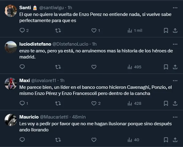 Qué dijeron los hinchas de River ante la noticia de la posible vuelta de Enzo Pérez