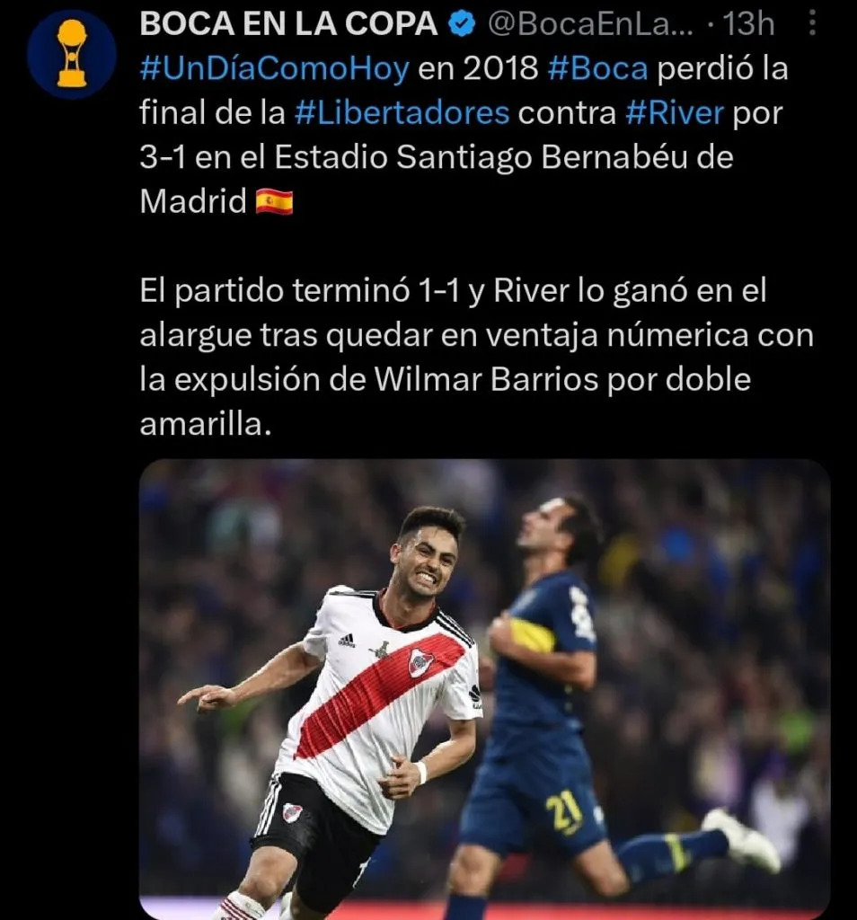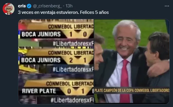 Se cumplen cinco años de la noche en la que River le ganó a Boca la final de la Copa Libertadores en el Estadio Santiago Bernabeu, ante los ojos del mundo. Los goles de Pratto, Juanfer y Pity Martínez quedaron inmortalizados para siempre y las cargadas también. Cada 9 de diciembre, los hinchas del Millonario deliran en redes con los memes y las gastadas.
