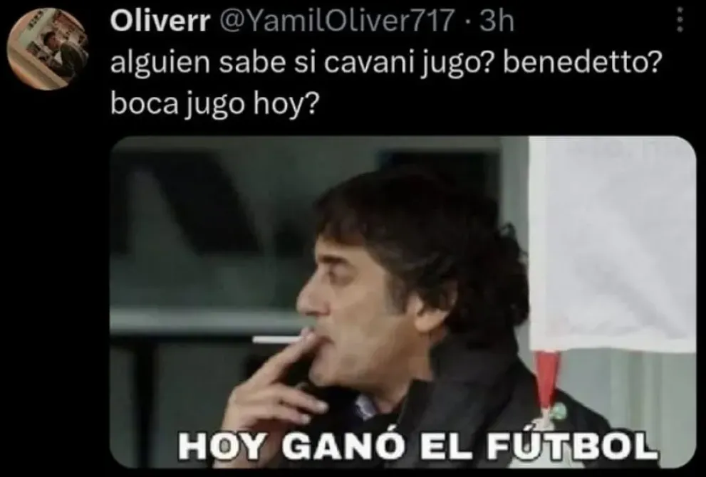 Pero un superclásico es especial y los hinchas también lo juegan. En esta oportunidad -como tantas otras veces- las redes sociales se inundaron con memes para delirar a los hinchas del eterno rival. Una de las principales víctimas fue Valentín Barco, quien en los dos superclásicos que jugó prácticamente no tocó la pelota. Aunque no fue la única víctima, también hubo un palito para los inadaptados de siempre que agredieron a los jugadores del Millonario que celebraron el tanto de Enzo Díaz cerca de una de las plateas, para Jorge Almirón y para Edinson Cavani.