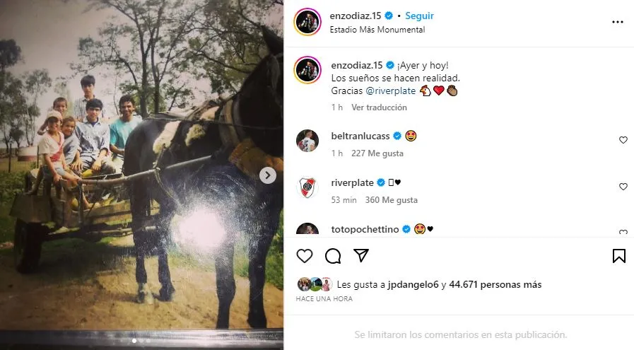 El posteo de Enzo Díaz en Instagram