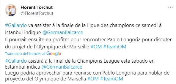 Más allá del dato de color sobre la final de la Champions, la agenda del Muñeco tendría contemplado una reunión muy importante. Según informó el periodista Florent Torchut, “Gallardo podría aprovechar para reunirse con Pablo Longoria para hablar del proyecto del Olympique de Marsella”. El directivo español, hoy presidente del OM, intentará convencer al ex DT de River, que no se desespera por volver a dirigir.