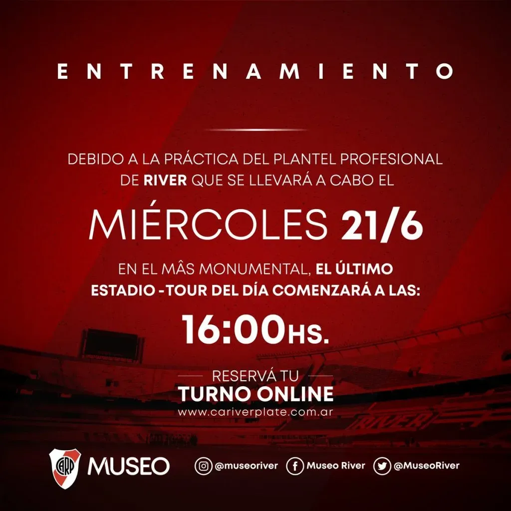 El Museo River está abierto para el público general y no es requisito excluyente ser socio o miembro de Somos River para poder visitarlo. Es una gran oportunidad para aquellos que no tienen la chance de conseguir entradas para los partidos y para los que quieren vivir la experiencia en familia. El mejor museo deportivo de Sudamérica y uno de los mejores del mundo abre sus puertas todos los días del año, de 10 a 19 horas.