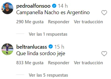 Por otro lado, Lucas Beltrán también se hizo presente en los comentarios y el actor Pedro Alfonso, reconocido fanático del Más Grande, hizo lo propio. Fueron varios los hinchas que también dejaron sus comentarios con algunas bromas y con mucho cariño para el Cerebro.