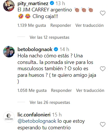 En esta oportunidad se pudo ver el cariño de sus compañeros, de ex compañeros y también de hinchas en las redes sociales. Nacho filmó una publicidad para una crema desinflamante y la compartió en sus redes sociales y ahí empezó el gaste. Pity Martínez lo comparó con Jim Carrey entre risas. Beto Bologna, fiel a su estilo, le consultó si la crema era para músculos o solo para huesos. El kinesiólogo Confalonieri fue quien pidió el comentario del Beto, conociendo su carismática personalidad.
