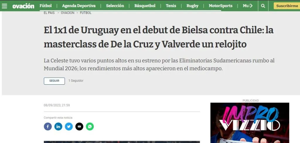 Las repercusiones en Uruguay por el partidazo de De la Cruz