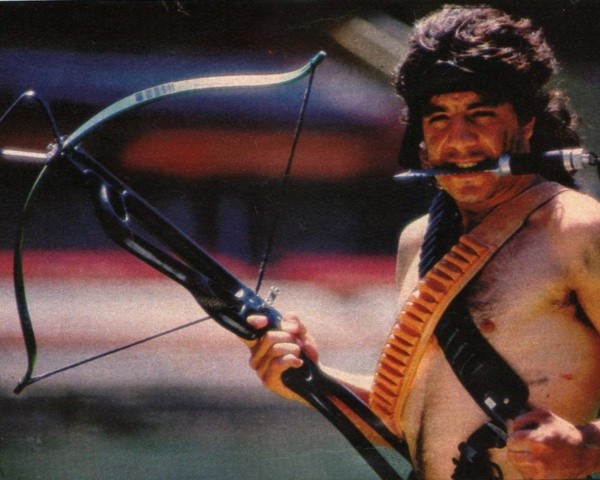 Juan Gilberto Funes haciendo de “Rambo” para unas fotos con El Gráfico.