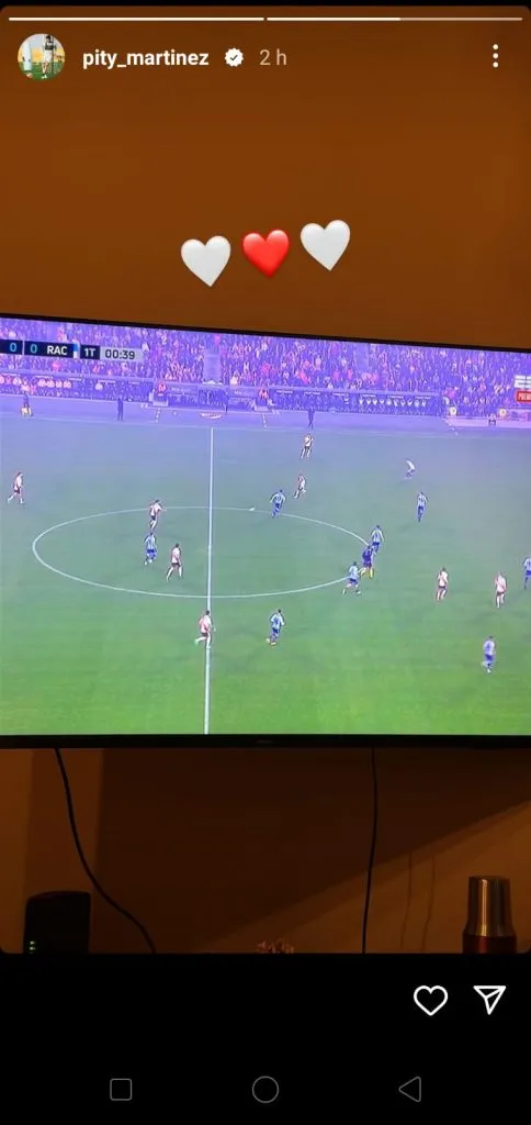Gonzalo Martínez utilizó su cuenta de Instagram para mandar un guiño a los hinchas de River. En sus historias compartió una imagen del duelo ante Racing y lo hizo acompañado de emojis con los colores riverplatenses. El Pity se volverá a poner el Manto Sagrado y el hincha no puede estar más feliz. Cabe recordar que recién podrá volver a las canchas en el mes de septiembre.