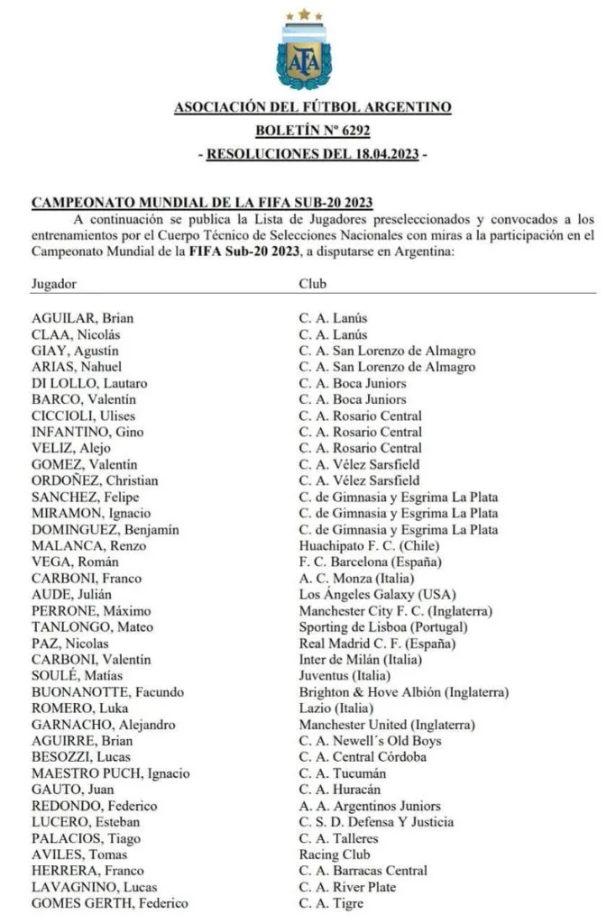 Más allá de nutrir a la Selección Argentina en las últimas competencias, hay una categoría en la que River no logró sostener el aporte que viene realizando. En las últimas horas Javier Mascherano confirmó la lista de buena fe para el Mundial Sub 20 que se disputará en la Argentina y en la nómina aparece un solo nombre que pertenece a las inferiores millonarias: se trata del arquero Lucas Lavagnino, que viene atajando con continuidad en el equipo de Reserva y que se entrena con el plantel profesional, a la par de Franco Armani, Ezequiel Centurión y Franco Petroli.