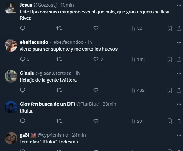 Habemus arquero en Nuñez y los hinchas lo celebran. Mientras Franco Armani está afectado a la Copa América con la Selección Argentina, River cerró y oficializó la llegada del que será su reemplazante cuando decida irse del club: Jeremías Ledesma. Conan firmó esta mañana su contrato y se sumó a la pretemporada bajo las órdenes de Martín Demichelis.