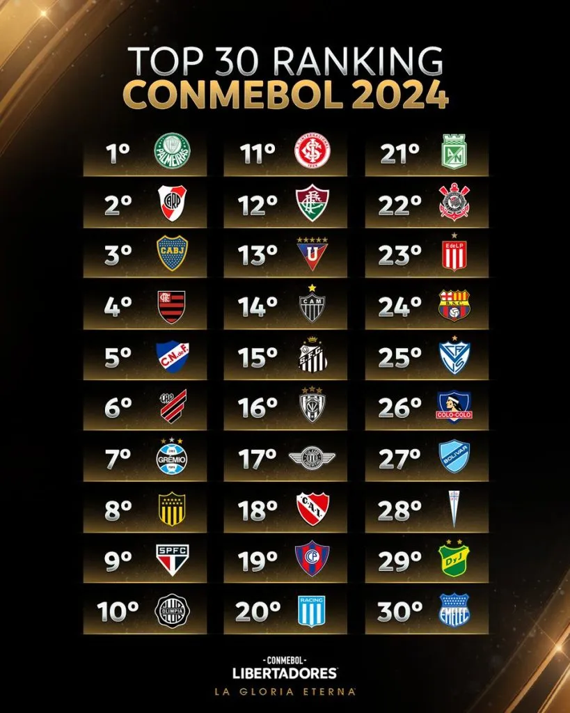 El Ranking de Clubes 2023 de la Conmebol ubicó a River en la segunda posición. El Millonario retrocedió un casillero con respecto a los últimos registros del ente sudamericano. El que se quedó con el liderazgo fue Palmeiras, que más allá de no haber conseguido el título en la última edición, jugó cinco de las últimas seis semifinales de la Copa Libertadores. ¿El tercero? Boca Juniors, que más allá de haber llegada la final, se quedó sin la chance de jugar la Copa en el 2024.