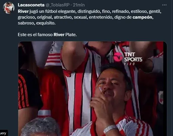 River se coronó campeón y los hinchas celebraron el título con una fiesta inolvidable. El Más Grande venció a Estudiantes xxx con goles de xxxx y el Monumental vivió una verdadera locura, con más de 86 mil espectadores y un festejo que recorrió el mundo. En las redes sociales los fanáticos de La Banda también gozaron del título y compartieron una interminable cantidad de memes. ¡A seguir disfrutando!