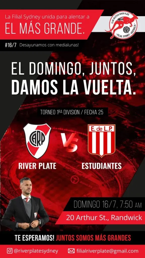 Este sábado los hinchas de River que viven en el exterior serán protagonistas de otra jornada especial. Como sucede habitualmente en los superclásicos o en los encuentros decisivos por Copa Libertadores, volverán a juntarse alrededor de un televisor o de un dispositivo móvil, esta vez para seguir las acciones del partido frente a Estudiantes de La Plata. Es que el equipo de Martín Demichelis tiene grandes chances de dar la vuelta olímpica. Y los fanáticos prometen festejar a lo largo y ancho de todo el mundo.