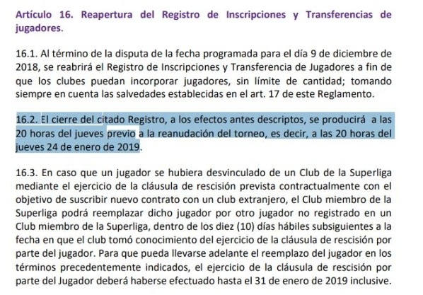 El cierre del libro de pases está reglamentado por la SuperligaArgentina