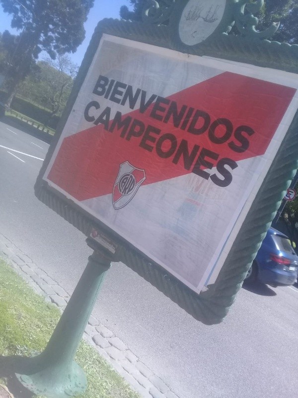 Sin embargo, las calles de Núñez no se quedaron atrás y saludaron a la delegación del Más Grande con afiches que empapelaron los diferentes sectores del barrio.