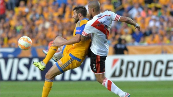 En su presentación oficial con los Diablos Rojos, el defensor debió enfrentarse a un viejo conocido: Tigres, equipo al que River le ganó la final de la Copa Libertadores de América en 2015. ¿Más curiosidades? Tuvo que marcar a André-Pierre Gignac, delantero francés que anuló en ambas finales.