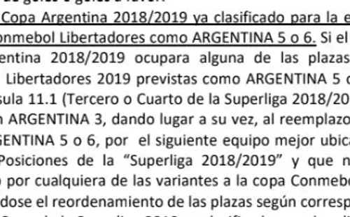 Actualmente, el eterno rival ostenta el lugar de “Argentina 5”(tercer puesto de la Superliga 2018/19). Entonces,si gana la final dejará libre esta plaza y la misma será ocupada por el siguiente equipo mejor ubicado en la tabla.