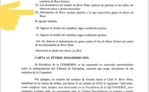 Haciendo un repaso rápido y sintetizado del comunicado formal de Boca hacia Conmebol, nos encontramos con puntos inentendibles y algunos hasta están fuera de la cronología que comprende a la competición en sí. ¿Por qué? Porque Boca mencionó entre sus argumentos para ser declarado ganador hasta los dopings de Mayada y Martínez Quarta en el año 2017 (por lo que, por cierto, ya han cumplido sus respectivas sanciones de siete meses).