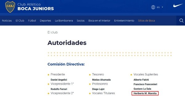 Heriberto Marotta, Co-Director del Servicio de Oftalmología que emitió el parte de Pablo Pérez, es miembro de la Comisión Directiva de Boca. A su vez, este profesional es Jefe del Departamento Médico del equipo Xeneize.