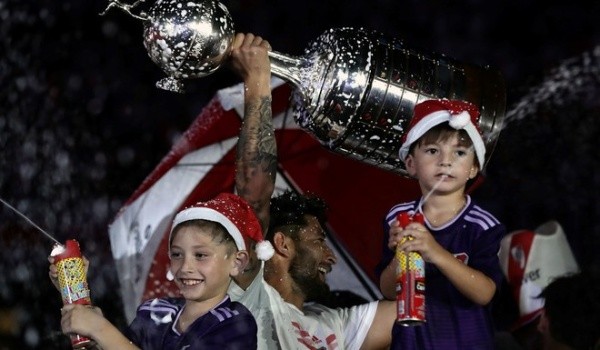La Banda le ganó la final más importante de la historia a Boca y los hinchas le brindaron una sensacional fiesta en el Monumental para celebrar la obtención de la Copa Libertadores.
