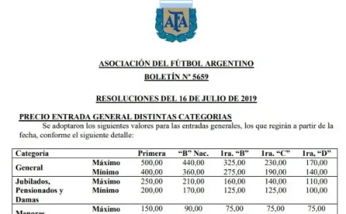 + A continuación, el detalle de los precios en todas las categorías del fútbol argentino: