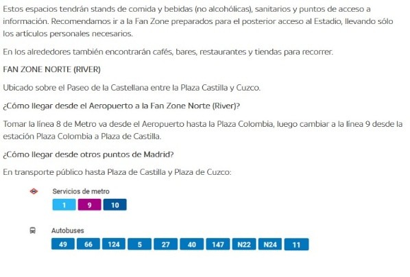 Allí, en la capital española, el equipo de Marcelo Gallardo contará con miles de hinchas que ocuparán el Fondo Norte del escenario habitualmente utilizado por Real Madrid. Y al respecto, la Policía madridista ya designó cuáles serán son los accesos para la parcialidad de River y Boca.