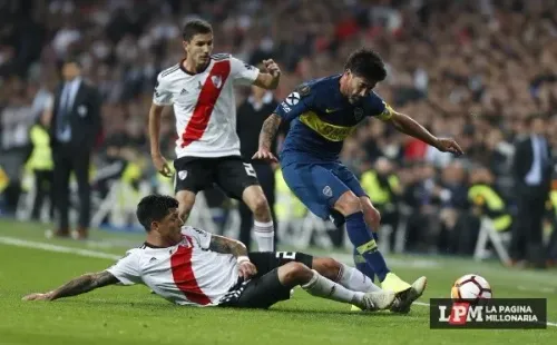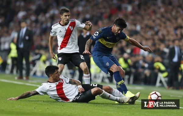 El encuentro estaba llegando a los 15 minutos del segundo tiempo cuando Lucas Pratto ganó la posición de Izquierdoz en el área de Boca. Fue entonces cuando Esteban Andrada derribó al Oso y simuló ser golpeado por el delantero de River para hacer tiempo.