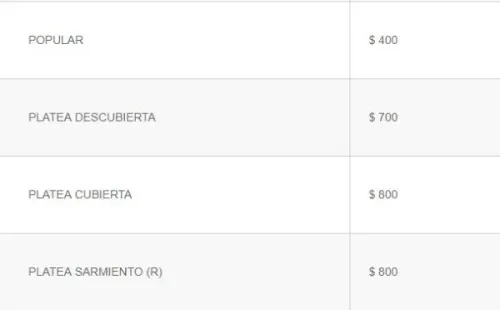 Entre el viernes 5 y el sábado 6 de octubre, desde las 10 hasta las 19 horas, se venderán las populares y plateas en las boleterías de la Playa Oficial del estadio Malvinas Argentinas. En caso de haber un remanente, el día del partido se venderán localidades en la boletería Sur de dicho estadio, desde las 12 horas hasta el comienzo del encuentro.