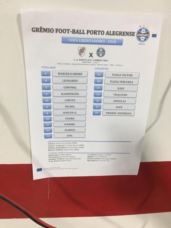 El banco de suplentes estará conformado de la siguiente manera: 14-Germán Lux, 28-Lucas Martínez Quarta, 18-Camilo Mayada, 5-Bruno Zuculini, 24-Enzo Pérez, 26-Ignacio Fernández y 27-Lucas Pratto. Rodrigo Mora quedó fuera de la lista de los relevos.