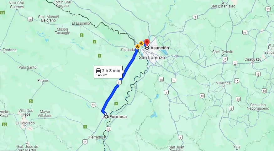 El grueso de los hinchas de River viajará desde Formosa, que es el paso más cercano hacia Paraguay. Quienes viajen en vehículos particulares, deberán tomar la ruta 11 y cruzar a través de Clorinda por el Puente Internacional San Ignacio de Loyola. El recorrido total es de 145 kilómetros y llegar de un punto a otro demanda alrededor de 2 horas, sin contar los trámites en el paso fronterizo.
