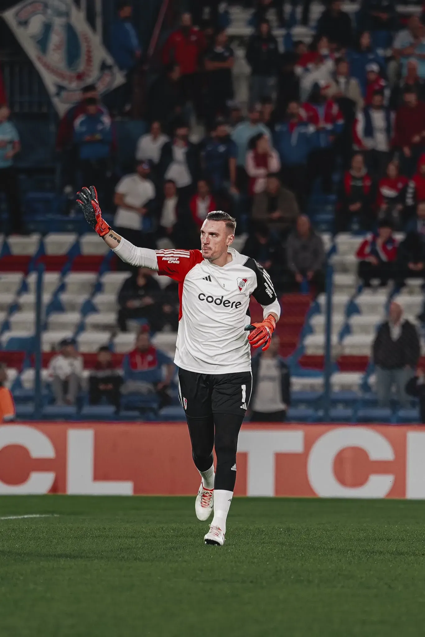 Franco Armani, Ezequiel Centurión y Lucas Lavagnino realizan la entrada en calor en el campo de juego, mientras que los futbolistas hacen la activación en los pasillos del estadio.