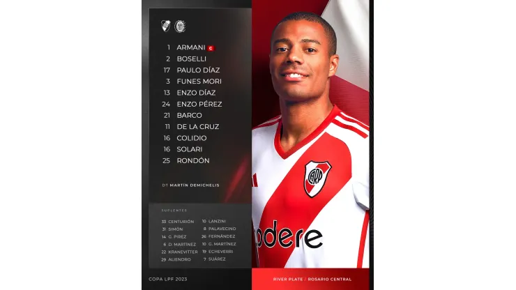 River enfrenta a Rosario Central en el Estadio Mario Alberto Kempes de Córdoba por una de las semifinales de la Copa de la Liga Profesional. El Millonario viene de eliminar a Belgrano en el mismo escenario y buscará dar un paso más en el camino rumbo al título.