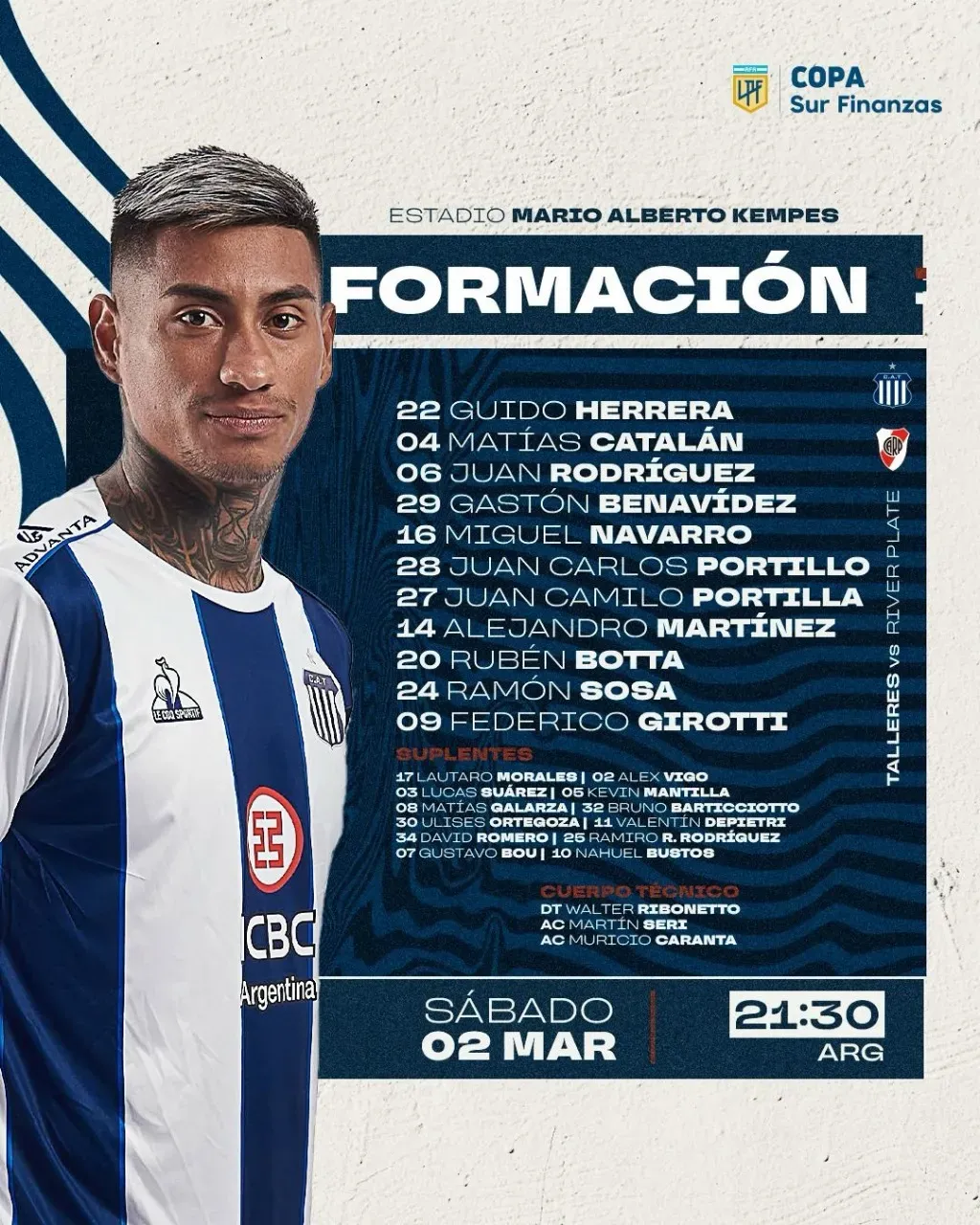 River vuelve a salir a la cancha en la noche de este sábado durante un siempre complicado partido ante Talleres en el Mario Alberto Kempes de Córdoba. Un partido en donde el Millonario buscará sumar de a tres para acomodarse en la Copa de la Liga.