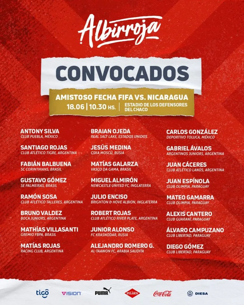 A la convocatoria de de Salomón Rondón se sumó en las últimas horas el llamado de Robert Rojas para participar del amistoso que jugará Paraguay frente a Nicaragua el próximo 18 de junio en el Estadio Defensores del Chaco. Al igual que en el caso del venezolano, desde River harán las gestiones para que el Sicario se sume después del cotejo en el Estadio Florencio Sola. En este caso, hay más días de margen y un viaje algo más corto.