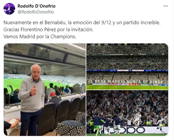 El ‘tuitazo’ de Rodolfo D’Onofrio en el Estadio Santiago Bernabéu