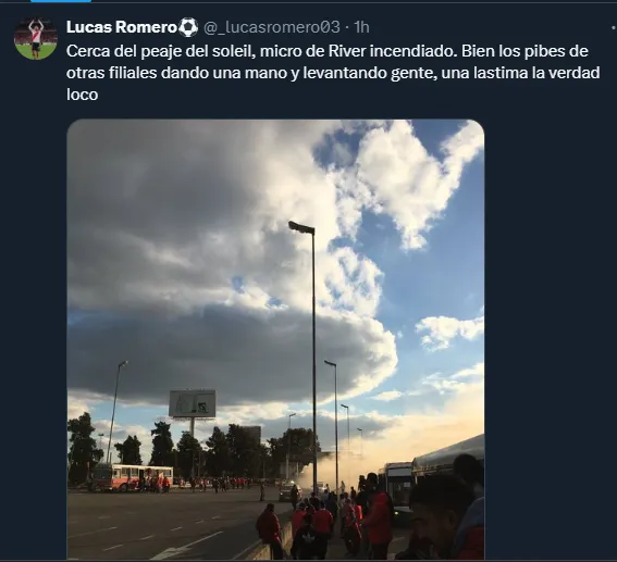 Un micro que trasladaba hinchas de River rumbo al Estadio Monumental para el partido ante Belgrano sufrió un incendio que lo consumió casi en su totalidad. El hecho se produjo sobre la Autopista Panamericana, a la altura de la localidad de Boulogne, a un costado del Shopping Soleil.