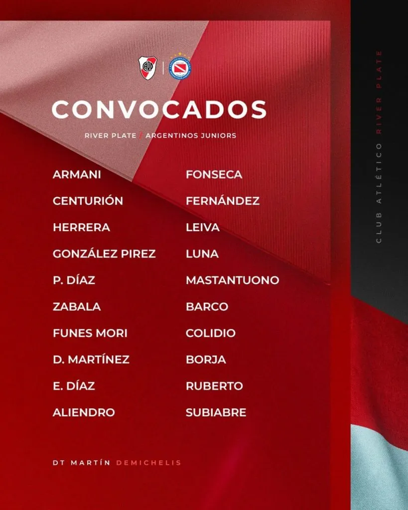 La lista de convocados de River