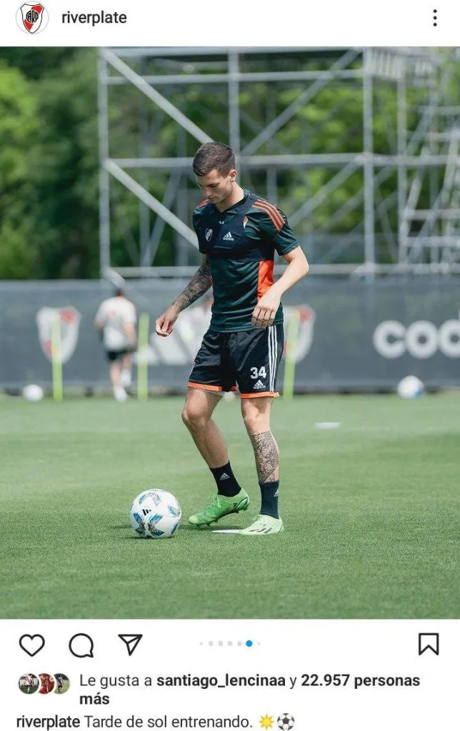 El mediocampista de 19 años, de buen año en la Reserva millonaria, entrenó junto al plantel profesional y participó de la práctica de fútbol junto a varios compañeros. Entre ellos estuvieron Joaquín Flores, Alexis González, Talo Colleta, Gonzalo Trindade, Daniel Zabala y Tobías Leiva. Una buena oportunidad para los juveniles, que terminaron su competición en Reserva y que pueden ser evaluados por Martín Demichelis de cara a la próxima pretemporada.
