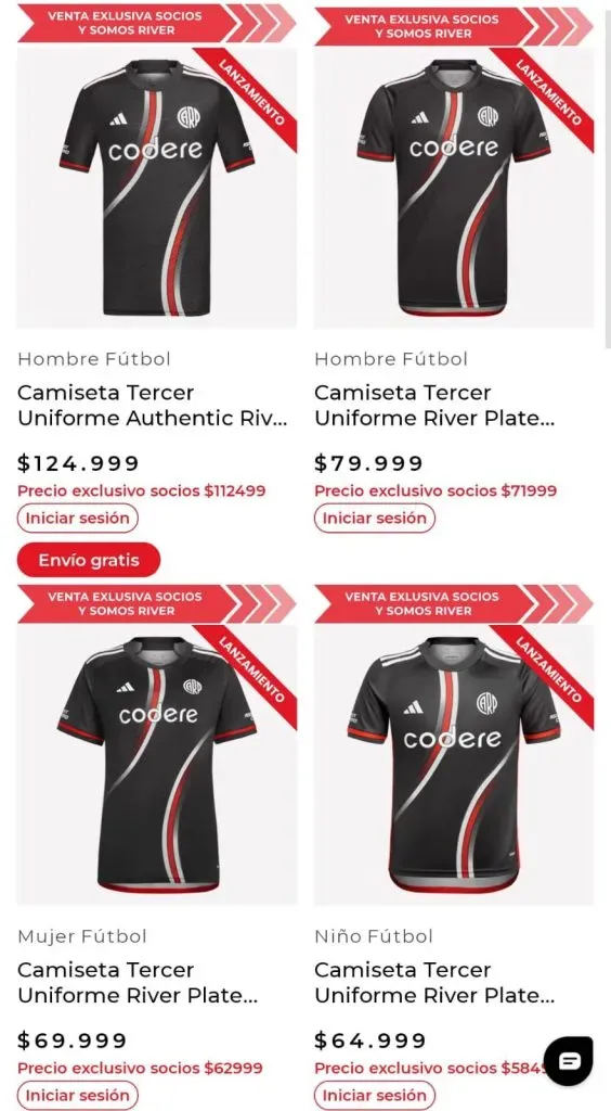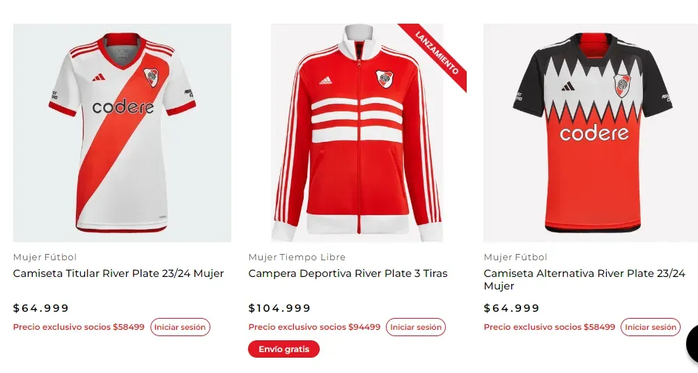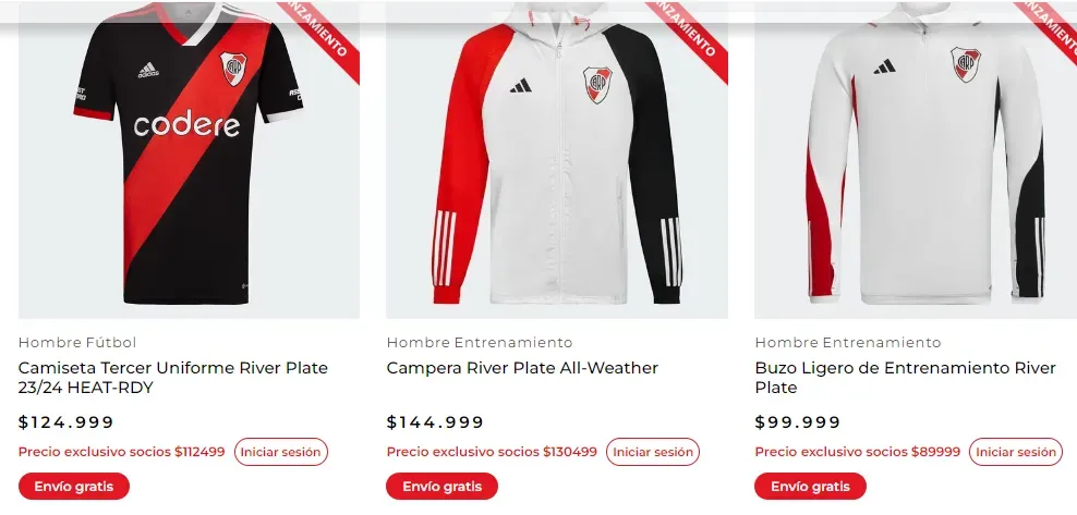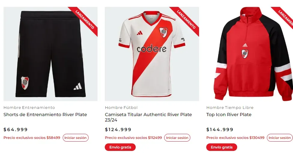 Todas las prendas oficiales del Más Grande se pueden adquirir a través de la Tienda Oficial sin necesidad de crearse una cuenta. La camiseta titular de River versión 2024 cuesta $124.999 pesos, con un precio exclusivo de $112.499 para socios (ahí si deben iniciar sesión).