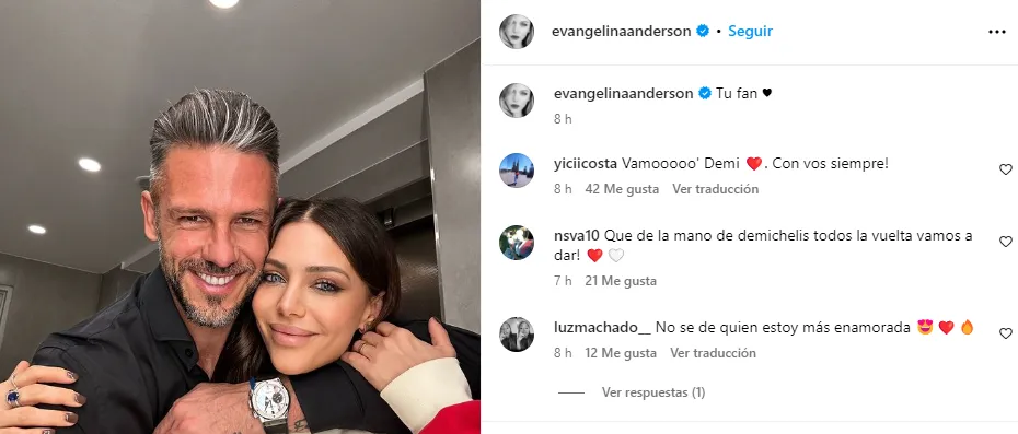 Evangelina utilizó su cuenta de Instagram para subir una selfie junto a Demichelis, los dos sonriendo y mirando a la cámara, junto con la frase “Tu fan”. El técnico lo ha dicho en varias ocasiones: el sostén de su familia fue, es y seguirá siendo fundamental durante su estadía en Nuñez.