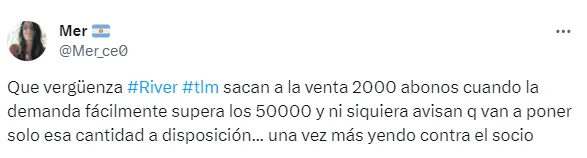 Ante la situación de no poder conseguir el abono y depender de los cupos que se liberen partido a partido para poder asistir a la cancha, los socios que quedaron fuera se expresaron en redes sociales: “Que vergüenza“, escribieron algunos molestos por esto.