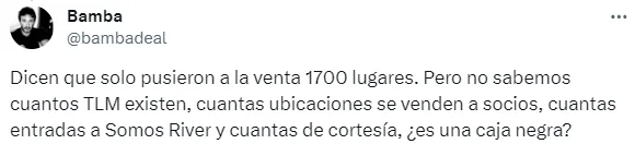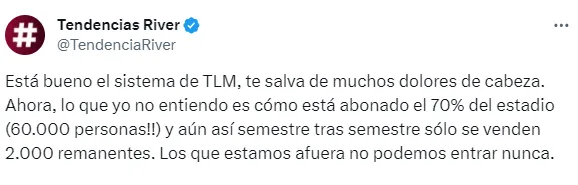 Con los plazos para quienes tenían el TLM al día agotados, River puso a disposición de los socios la última ventana para conseguir el abono y los mismos agotaron las localidades disponibles en solo una hora. Situación que despertó críticas.