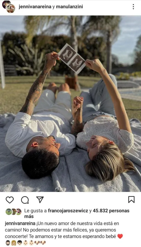 Más allá que el arranque de River en la Copa de la Liga Profesional no fue del todo feliz, Manu Lanzini tiene un nuevo motivo para celebrar con los suyos: en las últimas horas compartió en las redes sociales la noticia que será padre por tercera vez. “¡Un nuevo amor de nuestra vida está en camino! No podemos estar más felices, ya queremos conocerte! Te amamos y te estamos esperando bebé “, publicó Jennifer Reina, esposa del fútbolista millonario.