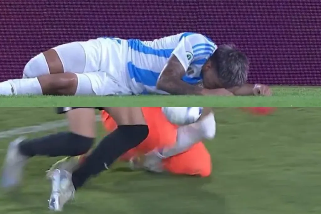 Tras un pase filtrado, el delantero del Millonario chocó con el arquero uruguayo. Apurado por cortar el ataque, el uno charrúa no frenó a tiempo y terminó desplazándose sobre el tobillo de Ruberto. Esto generó un efecto palanca sobre la rodilla del goleador, obligándolo a salir del partido.