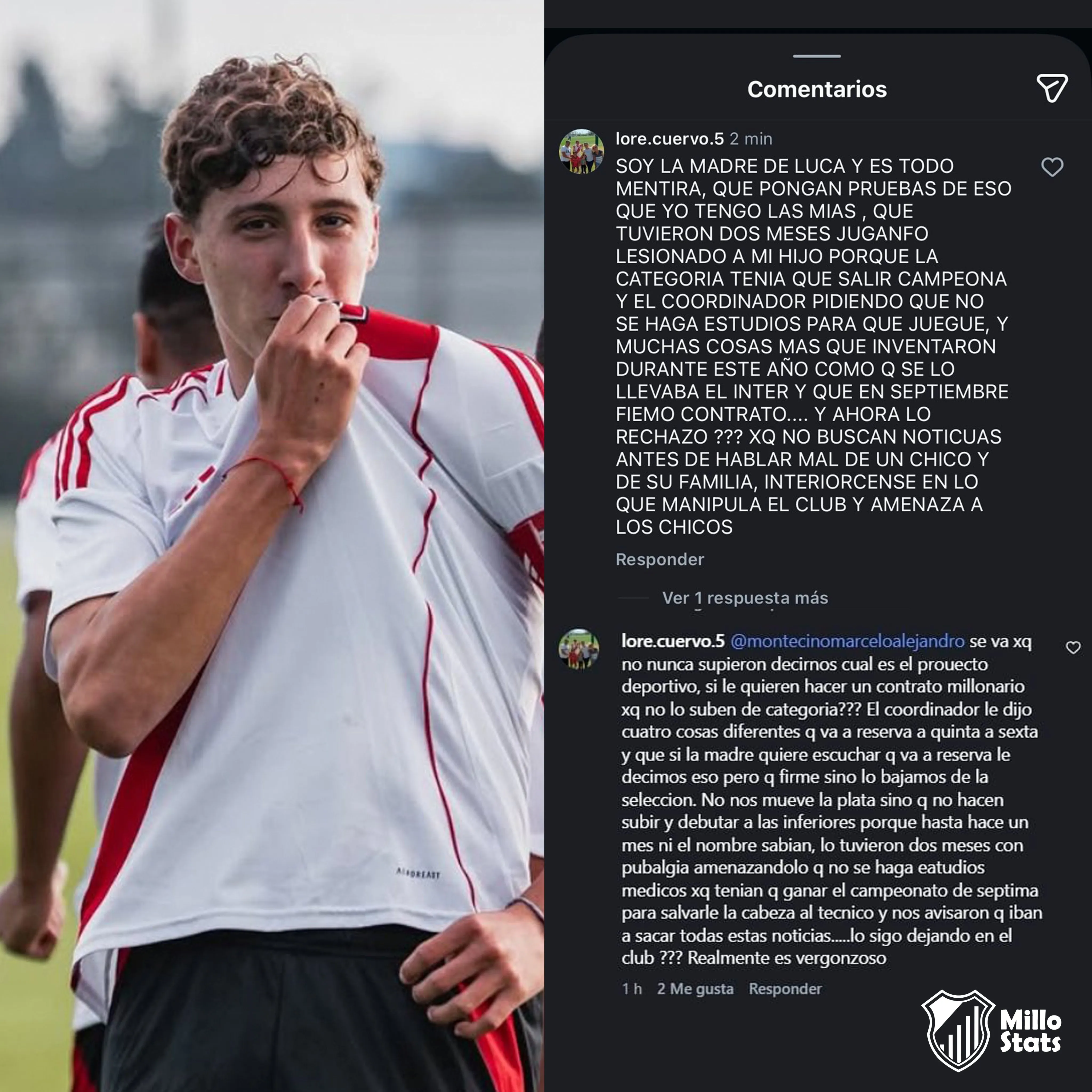 El chico rechazó firmar su primer contrato profesional y no le dejará rédito económico alguno a River, por eso se desató el escándalo en redes sociales. No es la primera vez que en Nuñez pasa algo similar (Tiago Geralnik y Giuliano Simeone, otros jugadores que se fueron por la Patria Potestad) ni tampoco con el agente mencionado (se llevó bajo la misma modalidad a Matías Soulé de Vélez, hoy jugando en Italia).