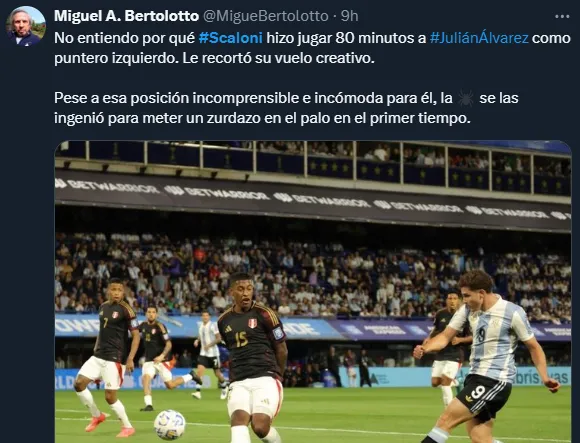 Si bien la Araña puede hacerlo porque es un delantero que sabe adaptarse a distinas posiciones en ofensiva, no podemos esperar que brille y que despliegue todo su fútbol cuando está limitado por la línea de cal. Ya había jugado allí frente a Paraguay y anoche Scaloni repitió la función ante Perú, lo que despertó la bronca de muchos hinchas de River.